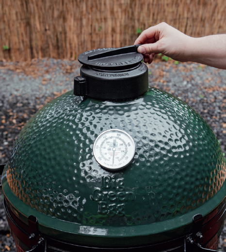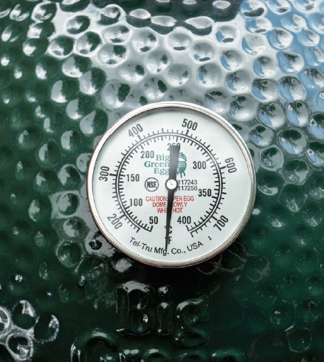If this is the first cook on your new Big Green Egg, I do not recommend cooking at a high temperature. This may damage the gasket before it can properly seal itself. Instead, light your cooker and bring the temperature up to 350°F (180°C) for three hours, to allow the gasket adhesive to fully cure and adhere to the EGG, before cooking at higher temperatures.