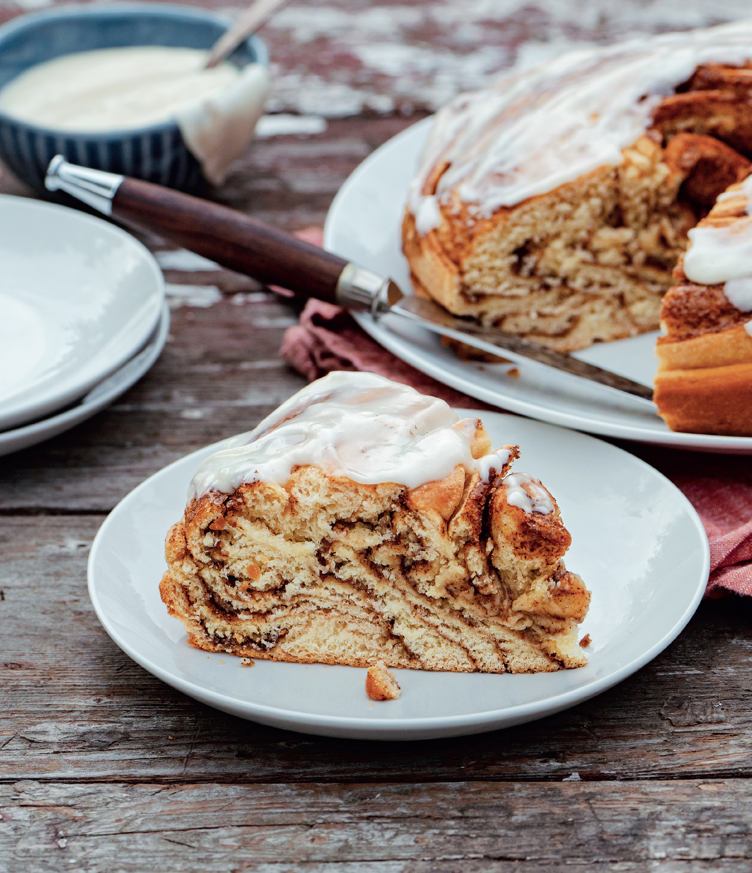 GIANT CINNAMON ROLL with BOURBON CREAM CHEESE FROSTING